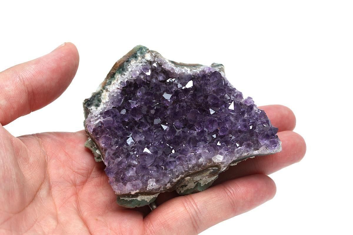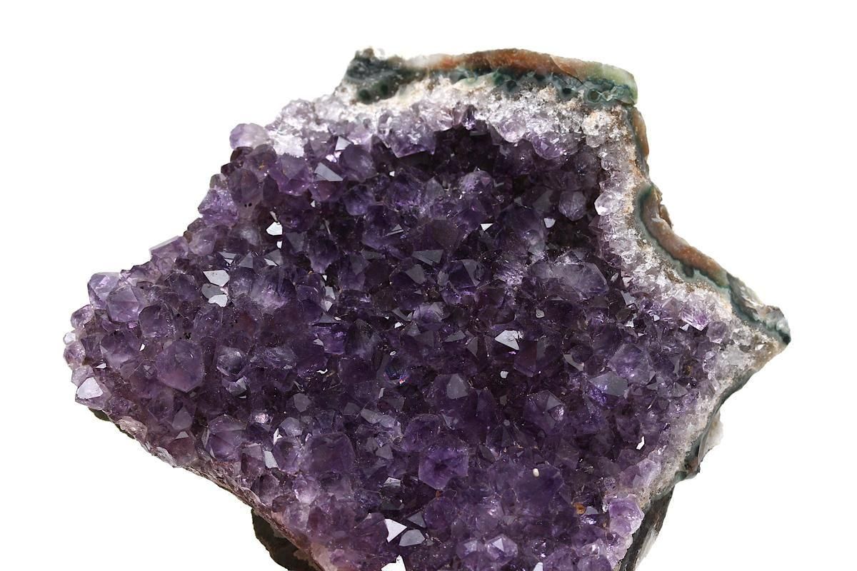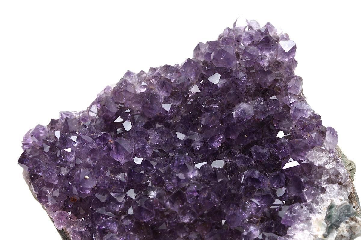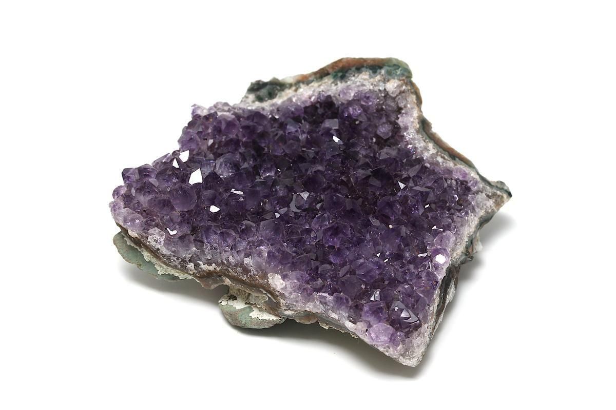 ウルグアイ産アメジストは、深く濃密な紫色と透明感をあわせ持つことで知られています。結晶ひとつひとつが瑞々しく輝き、群生したポイントが放つ艶やかな濃紫は、まさに「美しい」という言葉がぴったりです。光の加減によって濃淡が変わり、結晶の奥から神秘的な輝きが浮かび上がる様子は、いつまでも眺めていたくなるほどの魅力を放ちます。