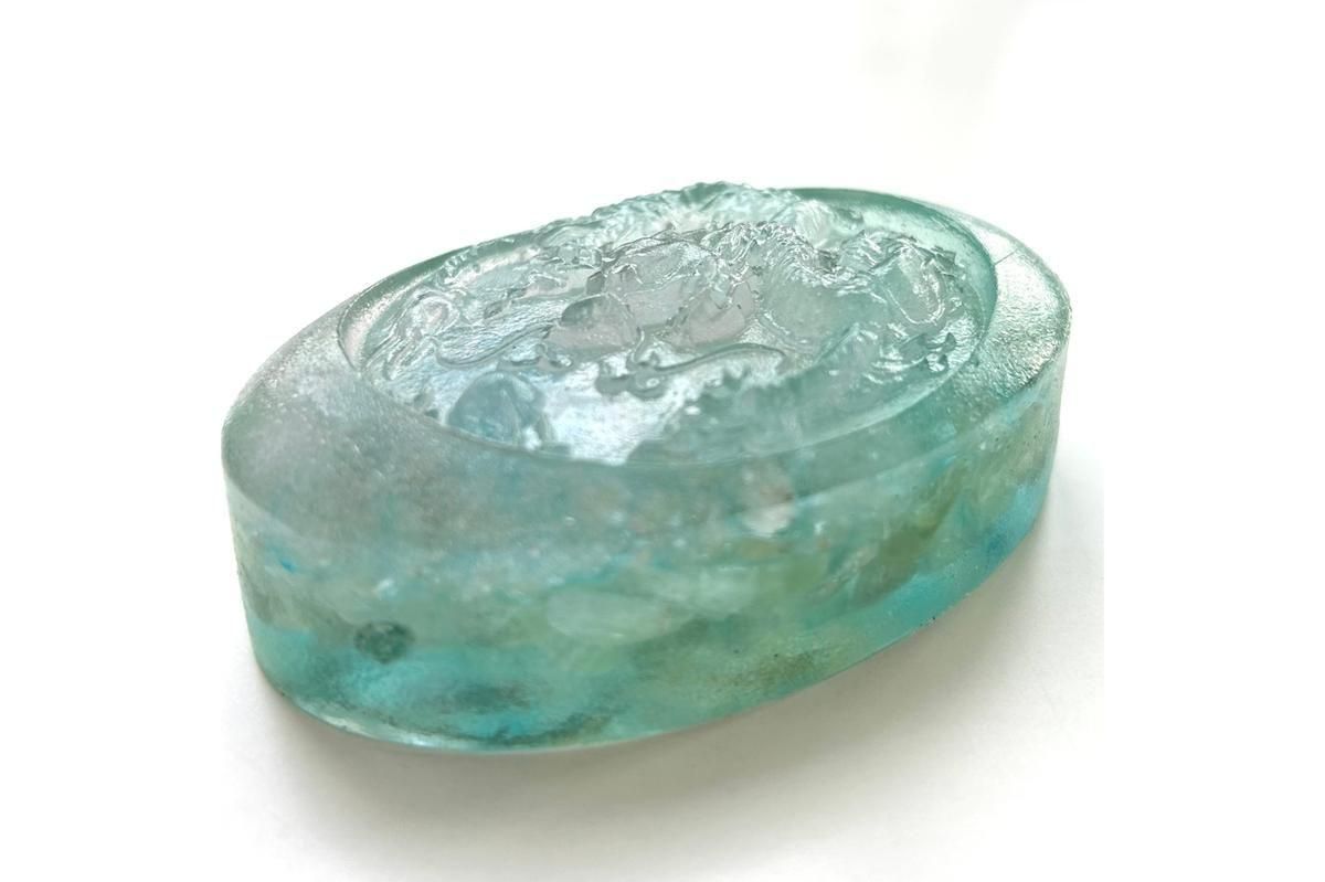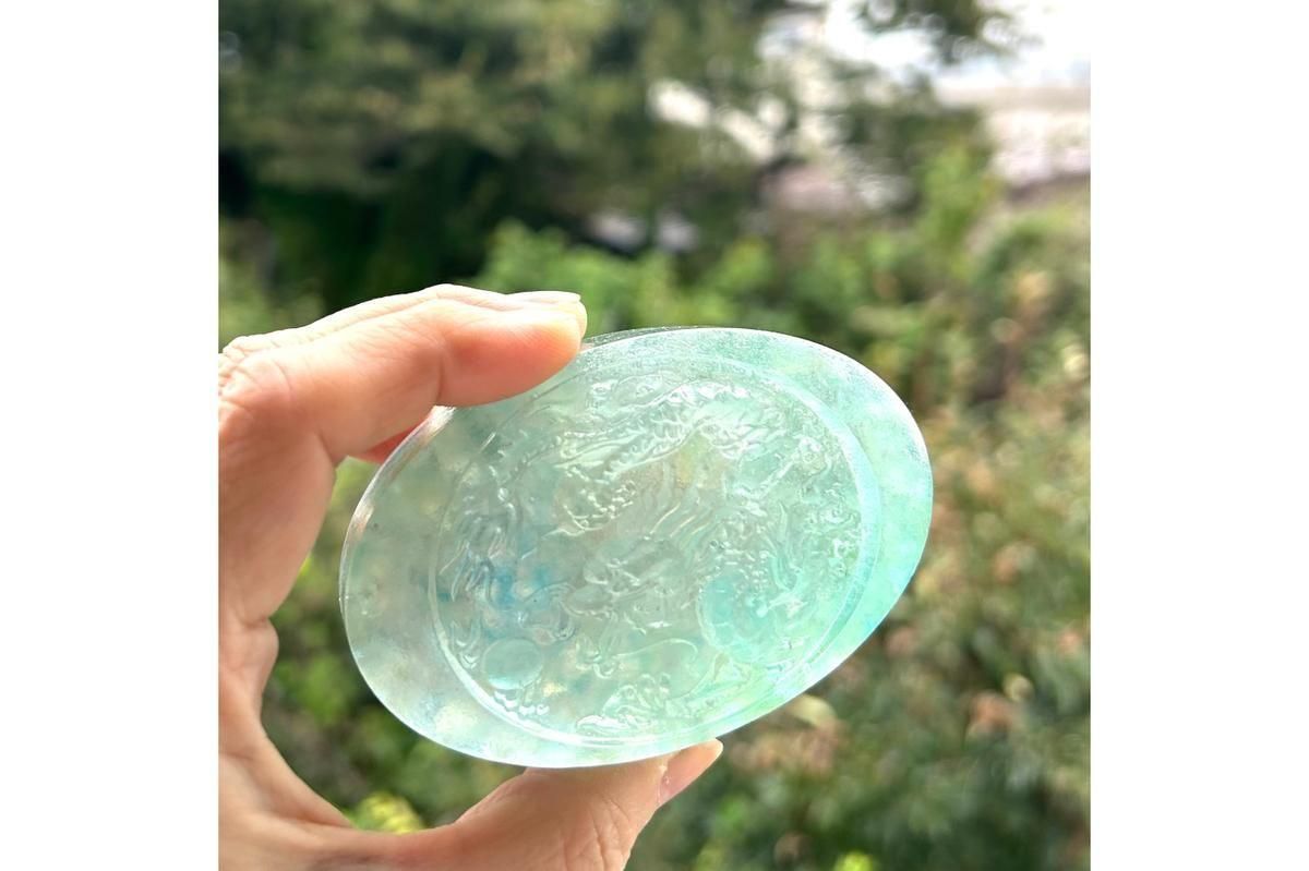 美しいプレナイトを封じ込めたドラゴンオルゴナイト。