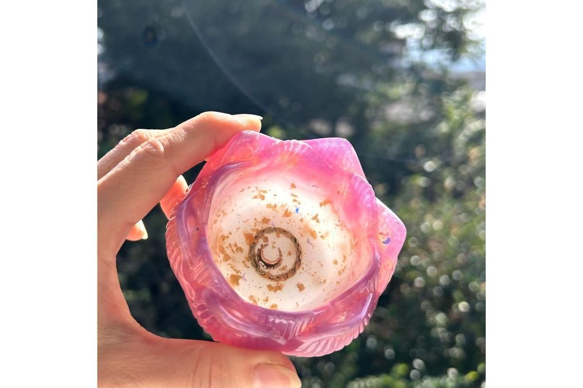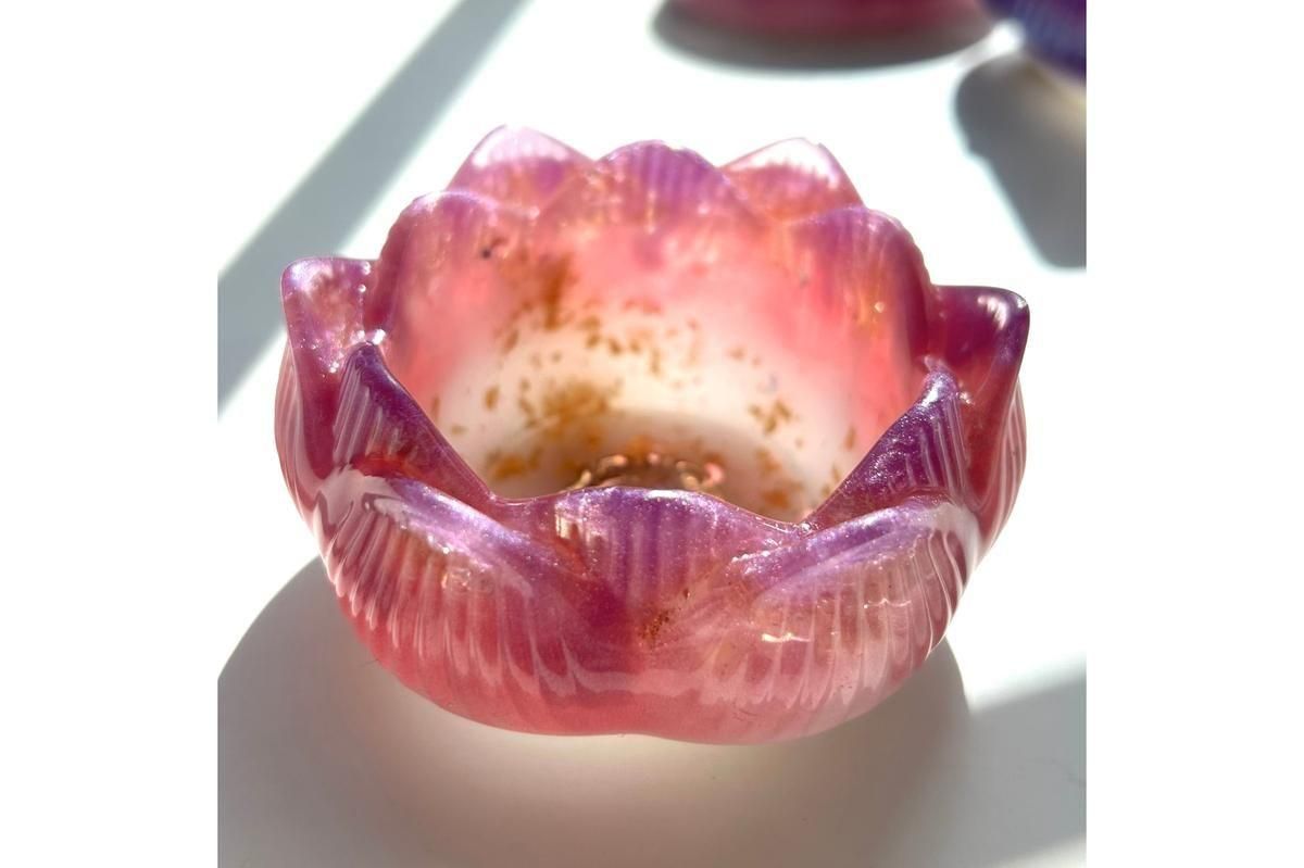 蓮の花を模った小物入れになるオルゴナイトです。