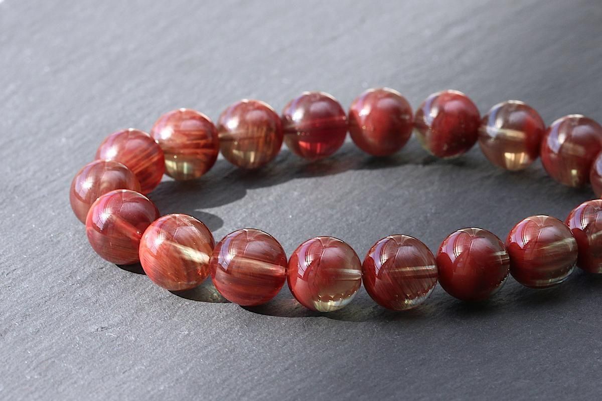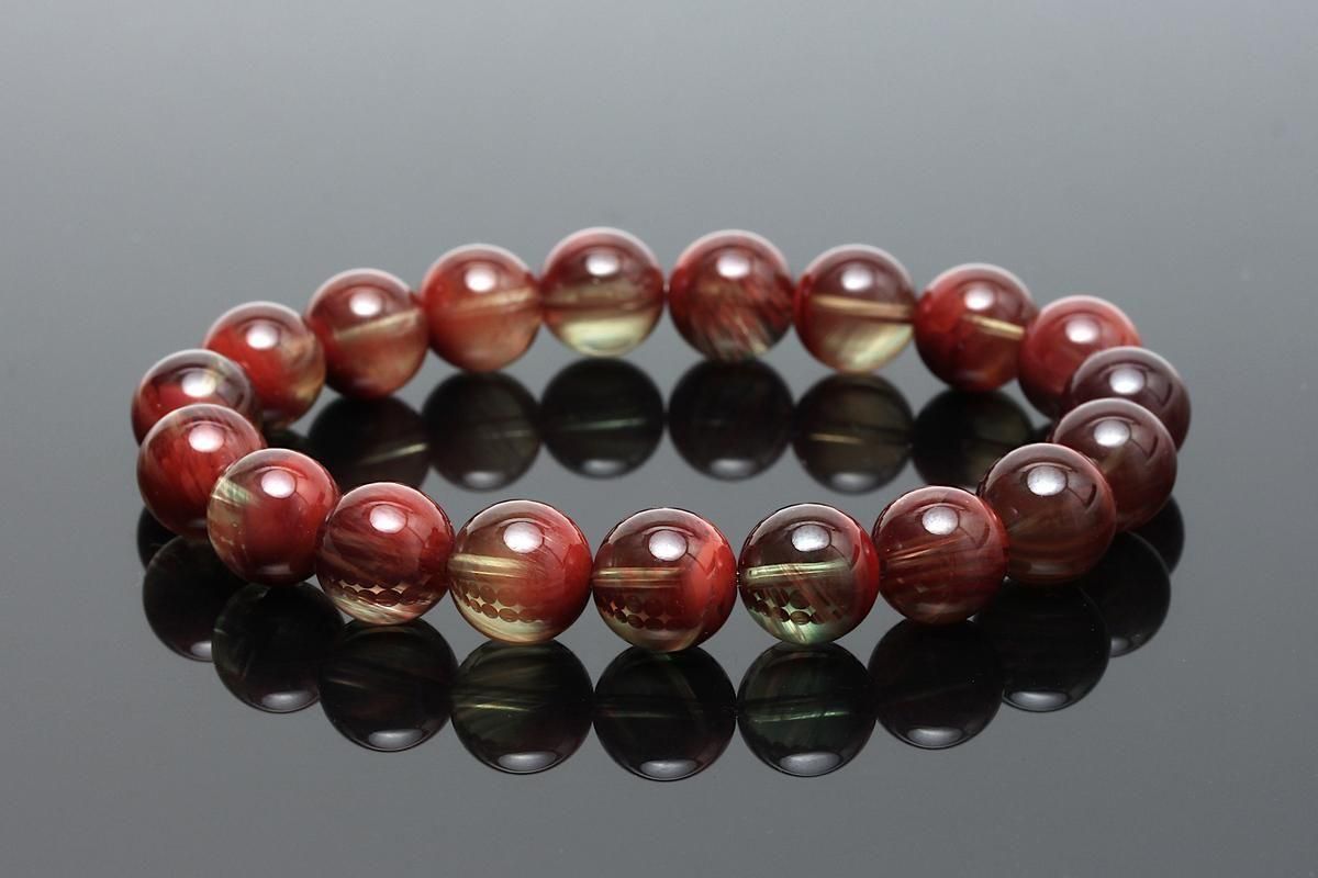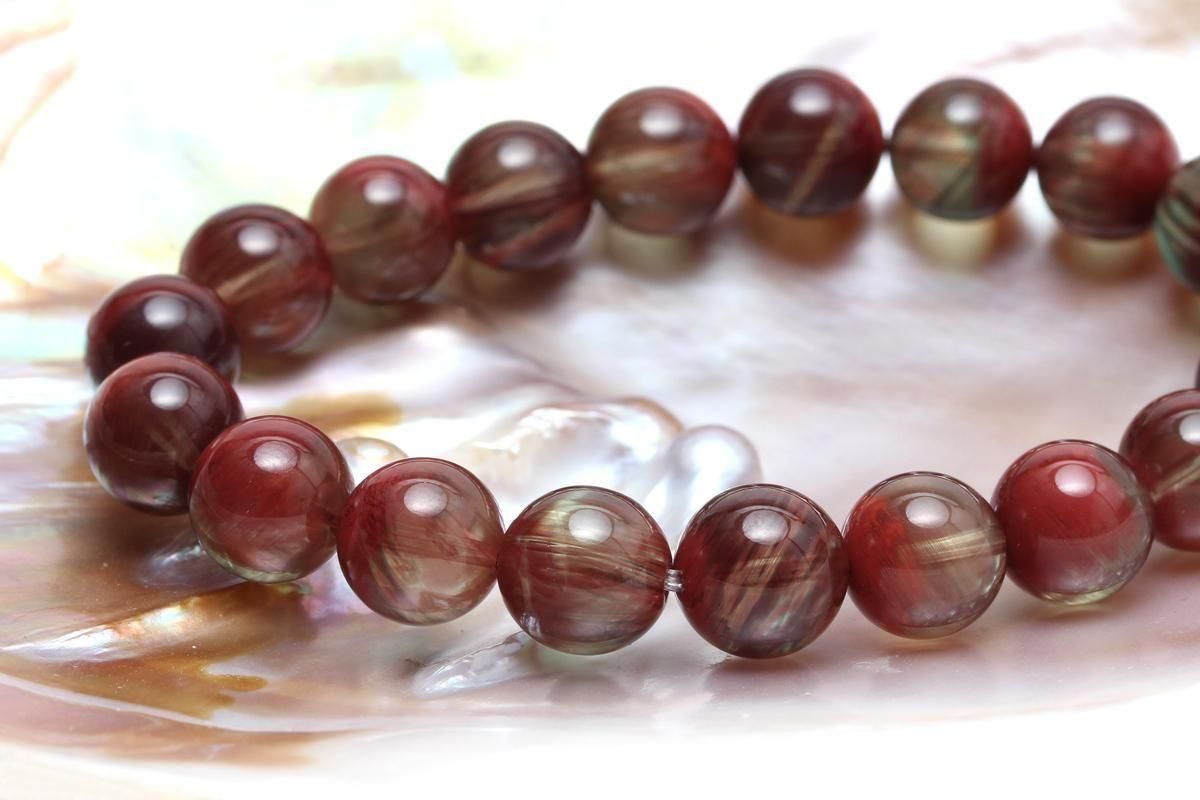 今回ご紹介するアンデシンは、チベット産の特徴である赤褐色のビーズを含んでおり、サイズも10mmに迫る大粒のビーズとなっております。