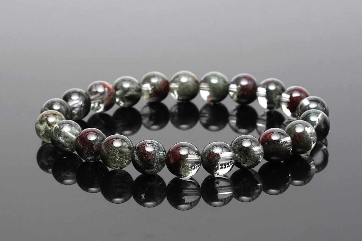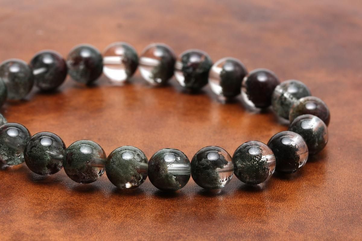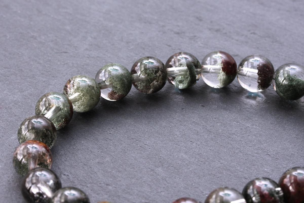 透明感のある水晶にクローライト(緑泥石)がインクルージョンしたガーデンクォーツブレスレットをご紹介します。