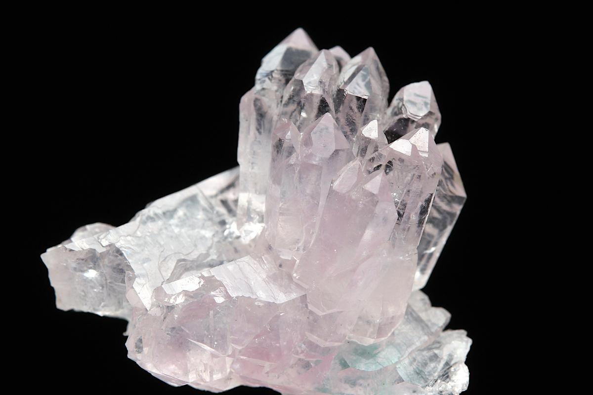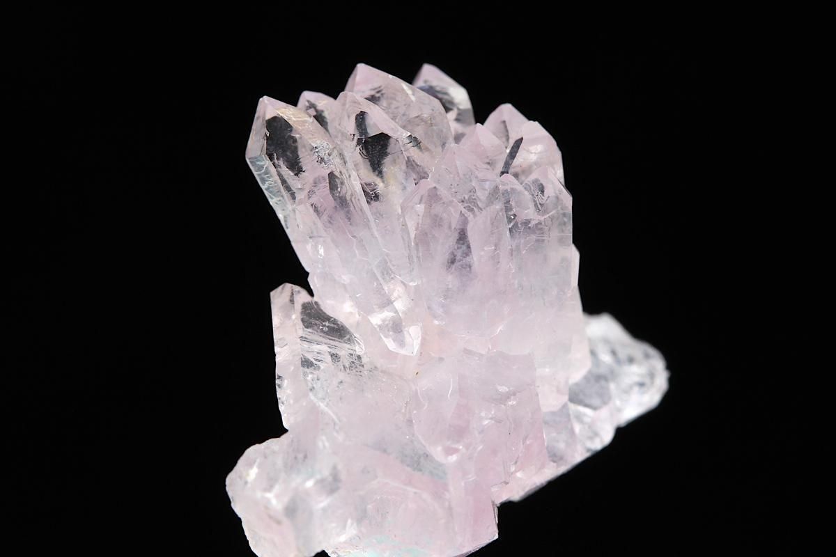 ローズクォーツは、成分としては石英(SiO₂)に分類され、微量のチタン・鉄・マンガンなどの元素が発色要因と考えられており、その内部に含まれる微量元素が結晶の成長を物理的・化学的に阻害する為、塊状で産出されることがほとんどです。