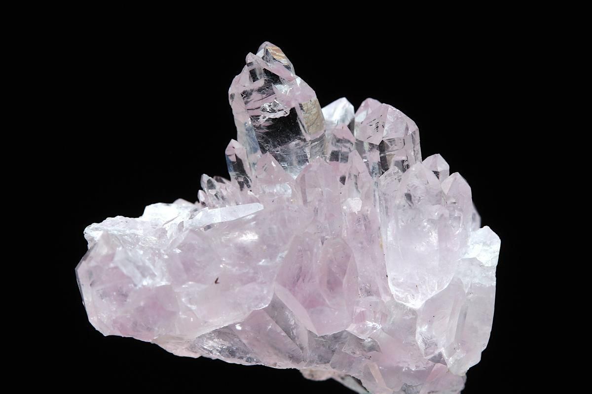 ローズクォーツは、成分としては石英(SiO₂)に分類され、微量のチタン・鉄・マンガンなどの元素が発色要因と考えられており、その内部に含まれる微量元素が結晶の成長を物理的・化学的に阻害する為、塊状で産出されることがほとんどです。